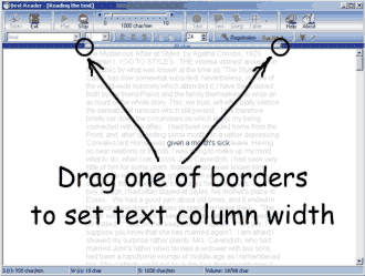 When you finished the lesson (the exercise progress bar reaches its end) you will perform a test to assess your speed reading technique again. According to obtained results you will pass to next level or not. If you wish to select speed reading exercises at your discretion, disable The Assistant and set exercise parameters manually. 3.Setting the text column widthTo set the width of text column drag one of column borders above the text.